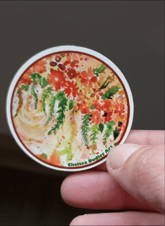 Bring the soft beauty of a wildflower meadow home with this beautiful floral sticker. The original artwork by Chelsea Dudley features a soft, whimsical watercolor blend of petals and greenery, perfect for adding a little rustic charm to your everyday items.